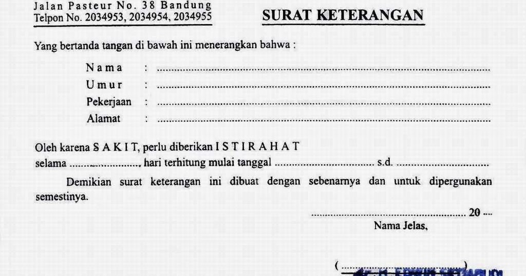 Contoh Surat Keterangan Sakit Dari Dokter via www.persuratan.com